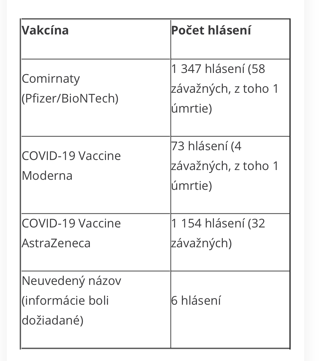 @hettinka krvné zrazeniny a dokonca aj úmrtie po vakcíne sú takisto....Astra bola v zahraničí už neviem presne v ktorom štáte stopnutá a nedá sa tam s ňou už očkovať lebo sa tam vyskytlo pár prípadov...ono všetko má dve strany a očkovanie má význam určite ale nie niečím čo nevieme poriadne čo nám to spôsobí nie je to vôbec testované ako vakcíny ktoré sa púšťajú do obehu 🙂 dáš sa očkovať a covid chytíš aj tak skôr či neskôr obchádzať ťa nebude len ti zmierni príznaky