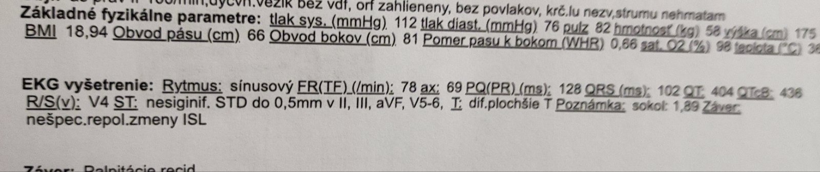 @stelly652 ahoj robil ho obvodný lekár, povedal že má pošle pre istotu ku kardiológovi aj na echo, viac sa nevyjadril, ale ďakujem pekne