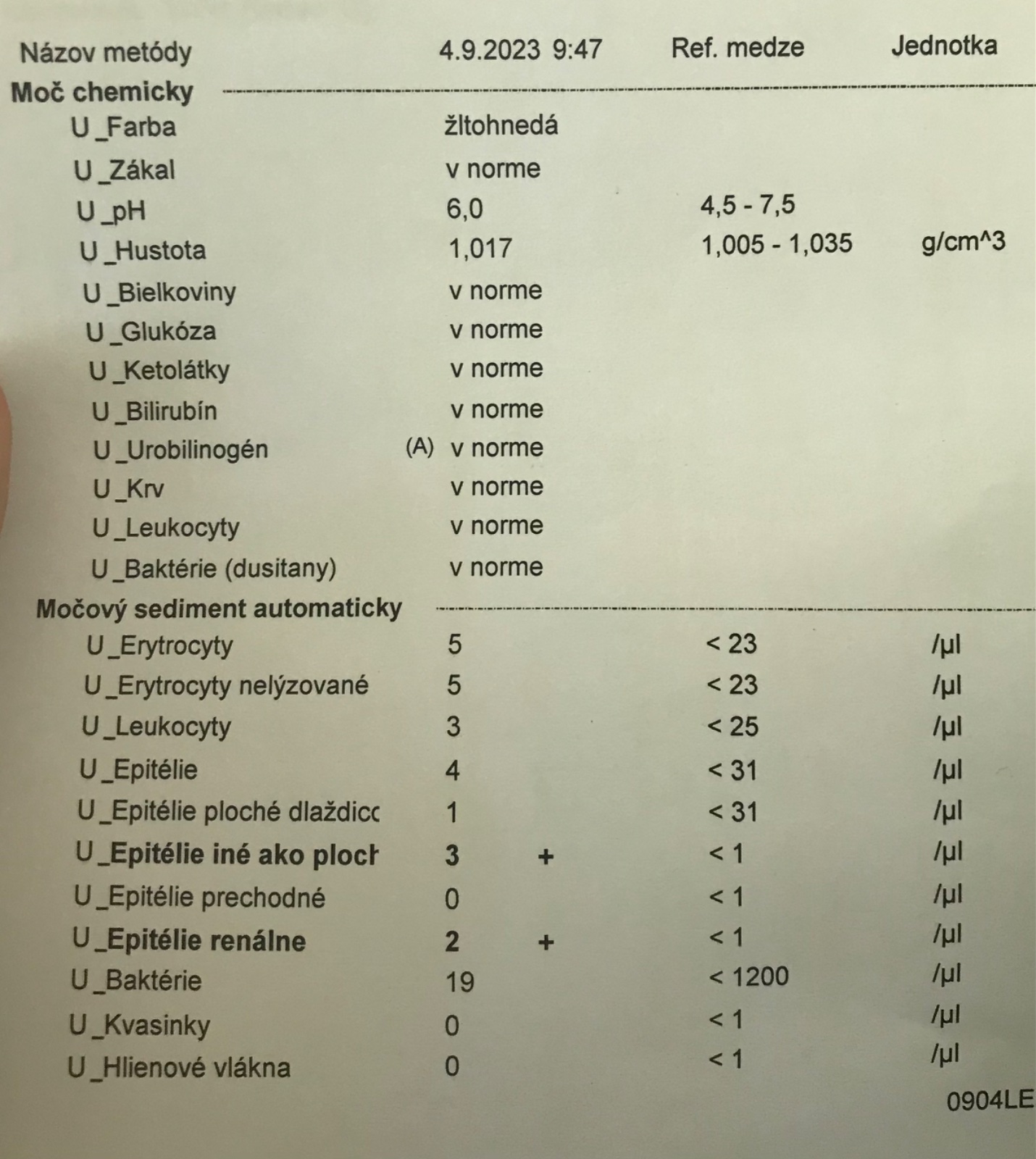 Teda ine epitelie znamena ze sa v moci nachadzaju aj ine epitelie (3) a renalne epitelie 2 znamena ze su to z 2/3 prave tie a zbytok zrejme nejake ine, ake konkretne sa nezistovalo alebo to nie je dolezite konkretizovat.