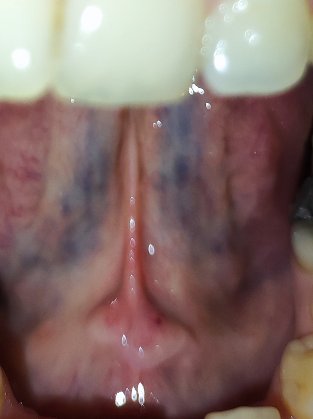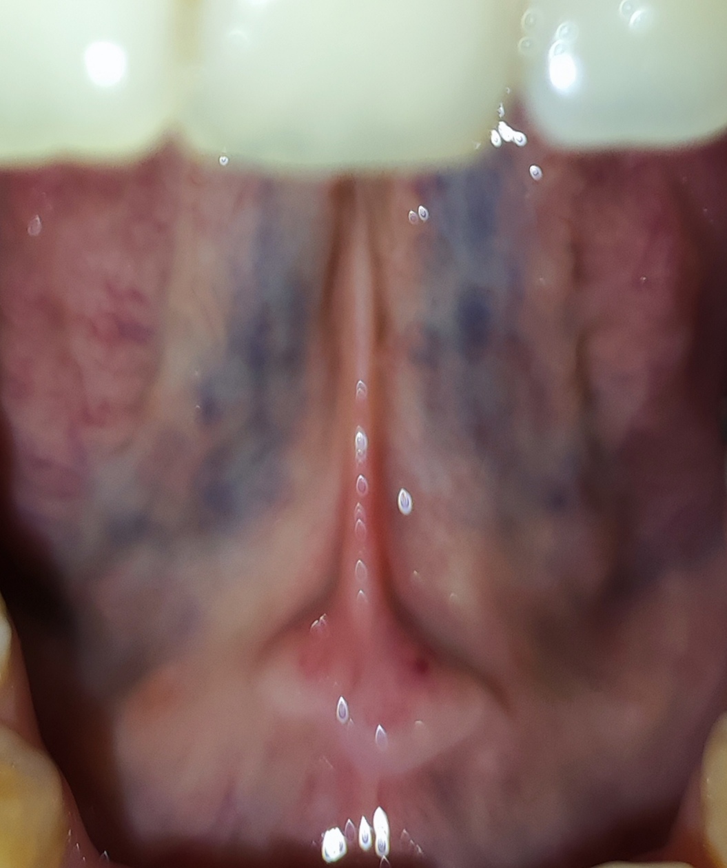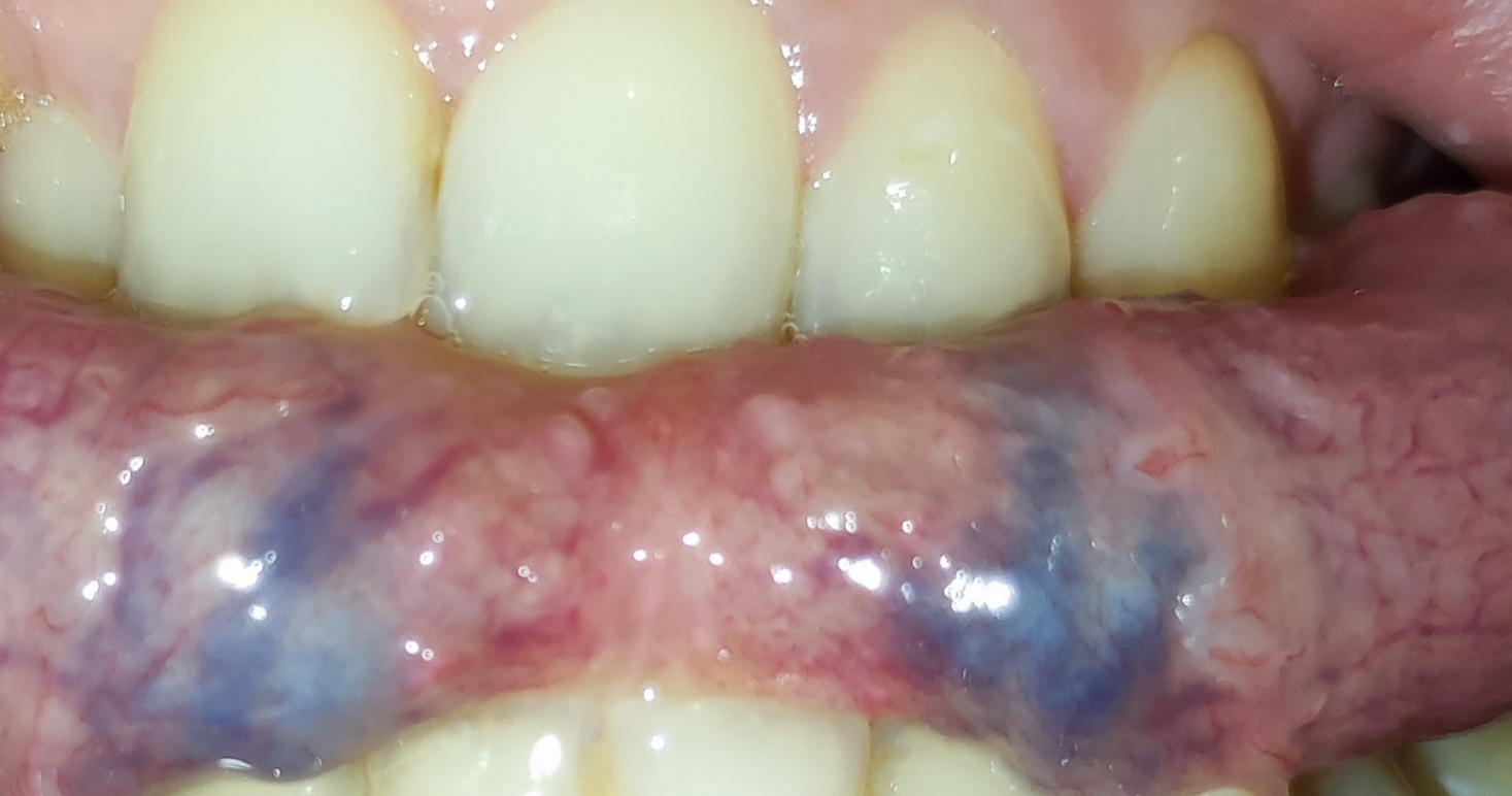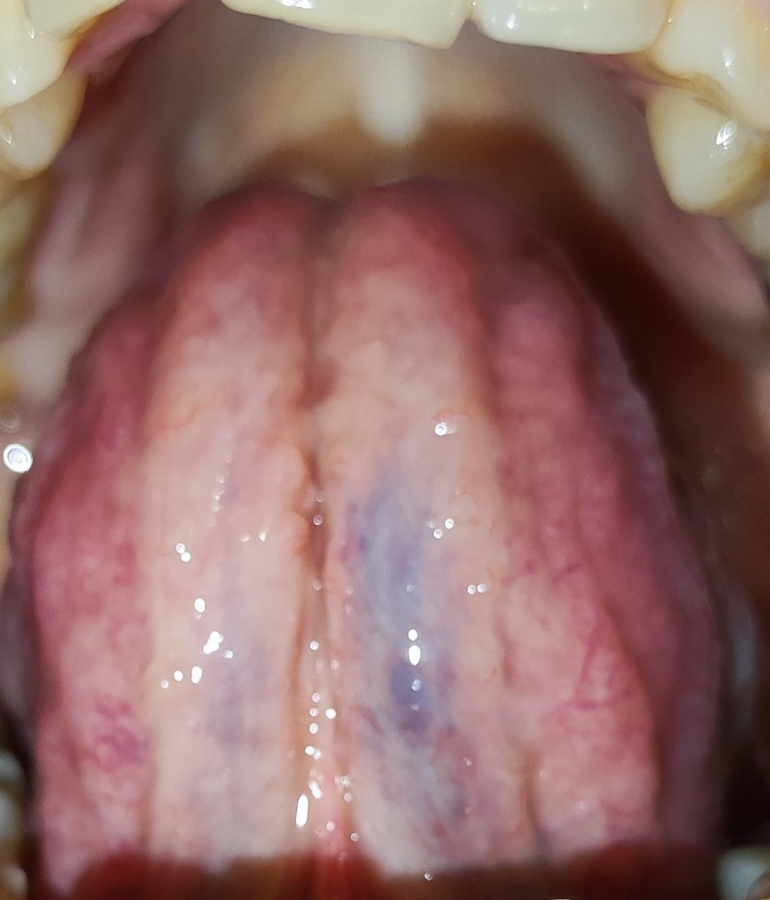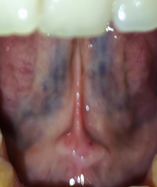 Dobrý deň. Dcéra 27 ročná má takýto jazyk,spodok jazyku je to v poriadku? Fialovo modrý.