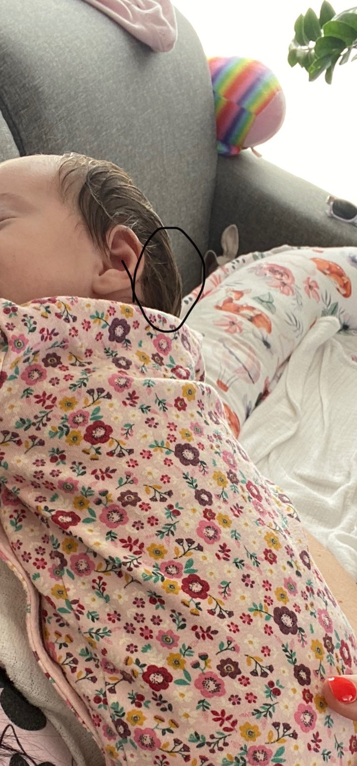 že je to zdurená uzlina, možno trošku hrdlo chytené, alebo keď jej prepichovali ušká, tak mala trošku hnisavé, možno z toho. A mala ju tam dlho, roky, potom som to prestala riešiť. Teraz je už dospelá, neviem, či ju ešte má. Ale roky ju mala zdurenú. Nepanikárila by som. Myslím, že 2 týždne to počká. Ale ak máš byť nervozna, skús zavolať dr. a uvidíš čo ti povie