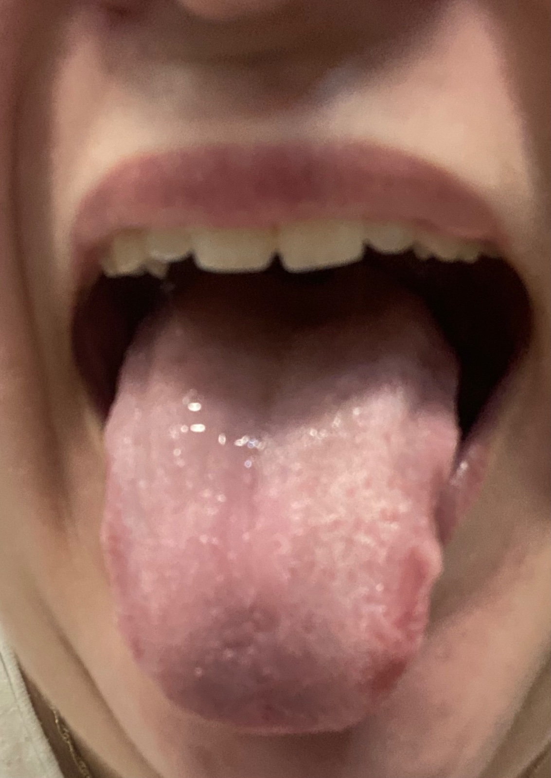 Opuchnuty jazyk, takze vidno aj odtlacky od zubov. Aj mne sa stava, prejde to.