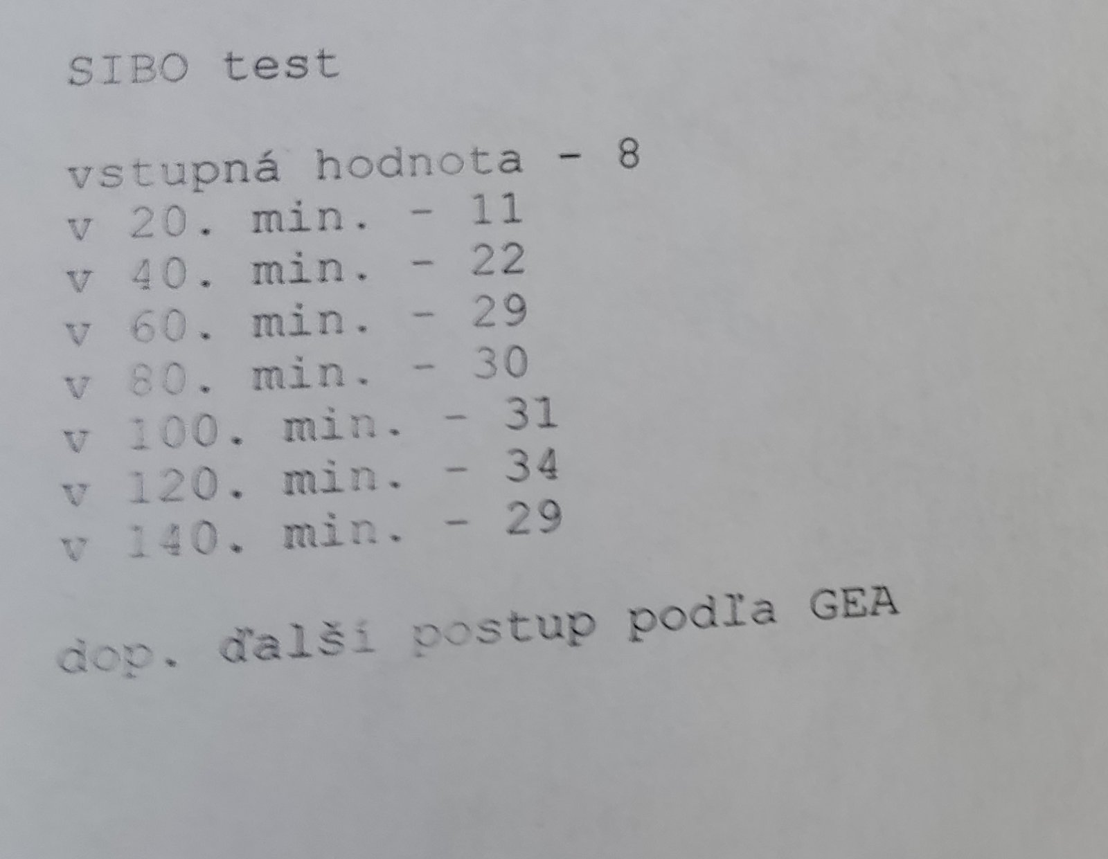 Prosím vás, takéto hodnoty na SIBO teste, neviete, či je to pozitívne alebo negatívne? Na gastro sa nedostanem hneď. Ďakujem.