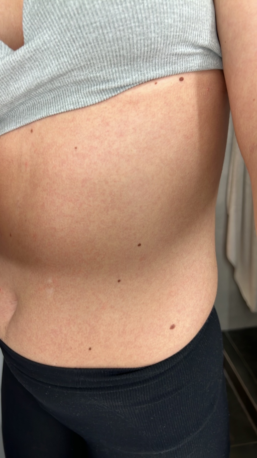 Ahojte, nemáte prosím niekto skúsenosť s takýmito fľakmi na tele? Dva dni predtým bola zvýšená teplota do 38+ bolenie tela ako pri chrípke, včera bol tento výsyp na trupe+ ruky s bolesťou hlavy bez teploty a dnes je už len telo červené a ruky v predlaktiach opuchnuté+ mierna bolesť hlavy. Môže to byť na niečo alergia? Iné príznaky nie sú. Ďakujem za každé info
