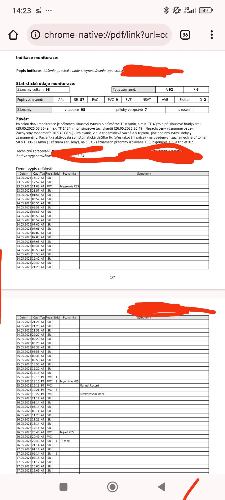 @veronika2316 A tieto vysledky ideš teraz zaniesť niekomu? Statisticky tam nemas vela extrasystol ale som zvedavý čo povie na ten triplet. Ono aj ta bigeminia je nepríjemná na pocit ked ide dlhsie( to je to bum, nič, bum, nič ) Ale triplet sa uz moze prejavit aj závratom. Asi by si si mala sama objednať holter ešte raz keď budeš mat viac extrasystol aby to bolo pre doktora zaujímavejšie. Inak podla mňa by ti prospelo skúsiť nejaký kardio tréning ak tie extrasystoly nemavas pri zaťaži. Podľa holtera máš vyšší tep priemerny aj maximálny (ak si vtedy zrovna nebezala).