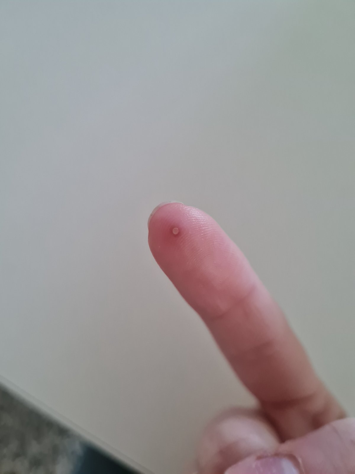 Ženy pomozte mi, toto sa mi objavilo na prste. Najprv to bola len čierna bodka v prste a teraz je to biele, nejde to ani vytlacit. Prosim pomozte mi. Mam ísť k lekarovi?
