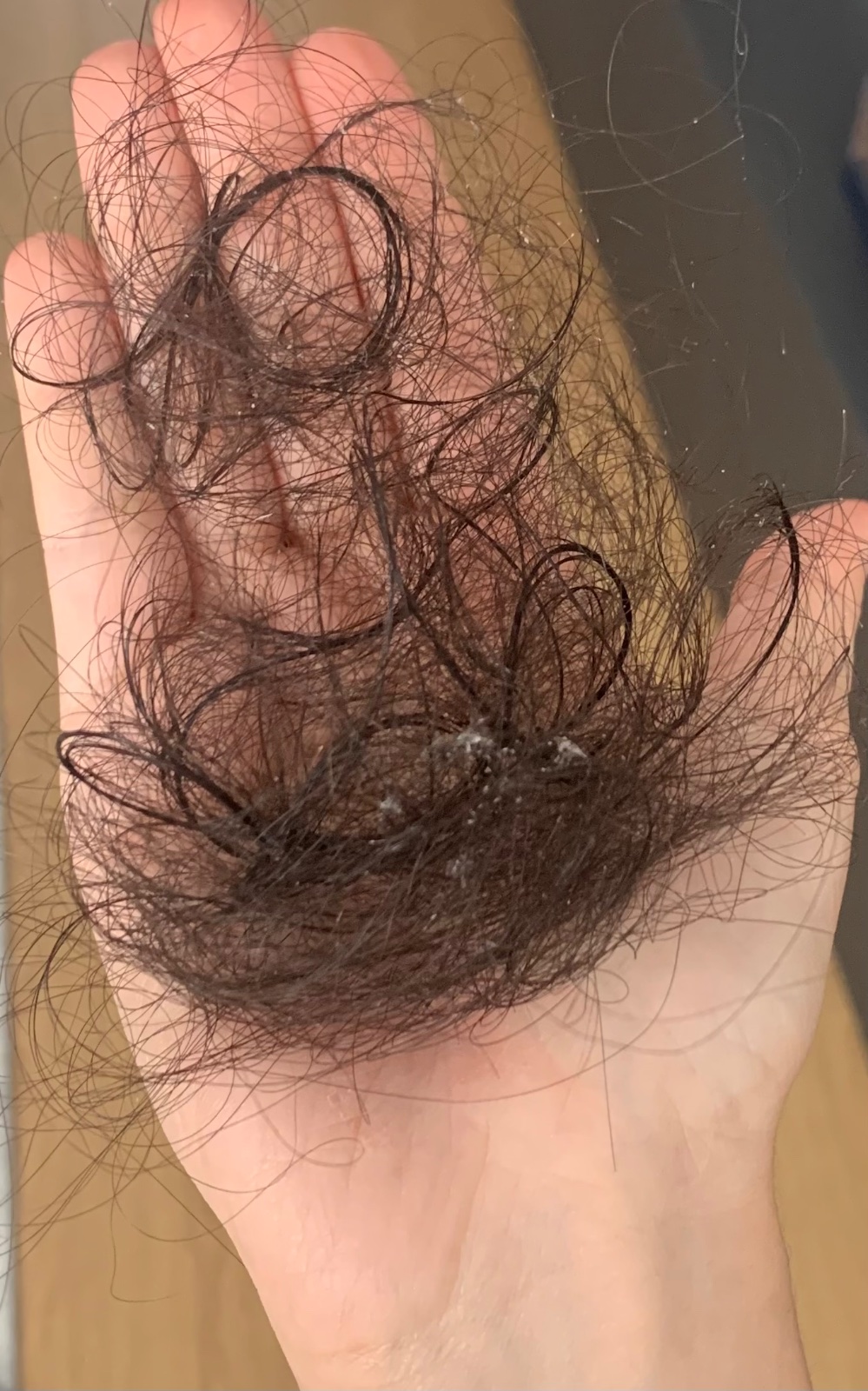 Toto je len počas umývania, ďalšia taka kôpka pri cesani a potom ako píšeš, zbieram po byte. Som z toho nešťastná, neberiem žiadne lieky, všetky vyšetrenia sú ok 🙄