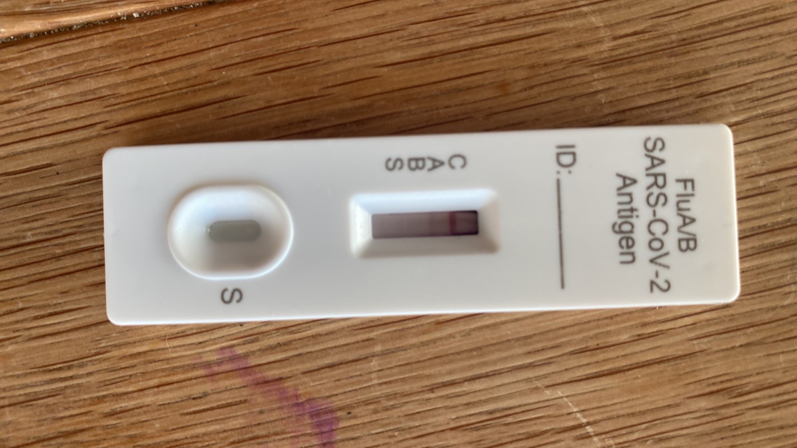 C je kontrolne, A je chripka A, B je chripka B a S je Sars covid. Tam kde je ciarka, to je pozitivne. V tomto pripade ma dcera chripku A