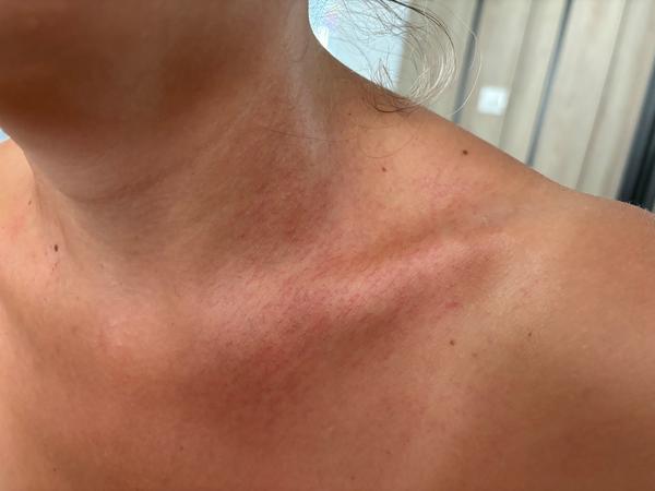 Prosím, čo to môže byt? Zihlavka? Alebo reakcia suchej kože s potom? Po sprche cca 20 minút sa mi to vytvorilo v časti cca okolo krku/pod krkom a veľmi to stipe a boli, aj keď som sa to snažila si premastit. Keď som sa obliekla, normalne ma to oblecenie obťažuje v tejto časti akoby ma to stipalo a bolelo. Bolo mi horúco, tak neviem či sucha koza s potom mohla zareagovať alebo alergia. Na tele som nič nemala oblečené keď mi to vybehlo. Vďaka za radu.