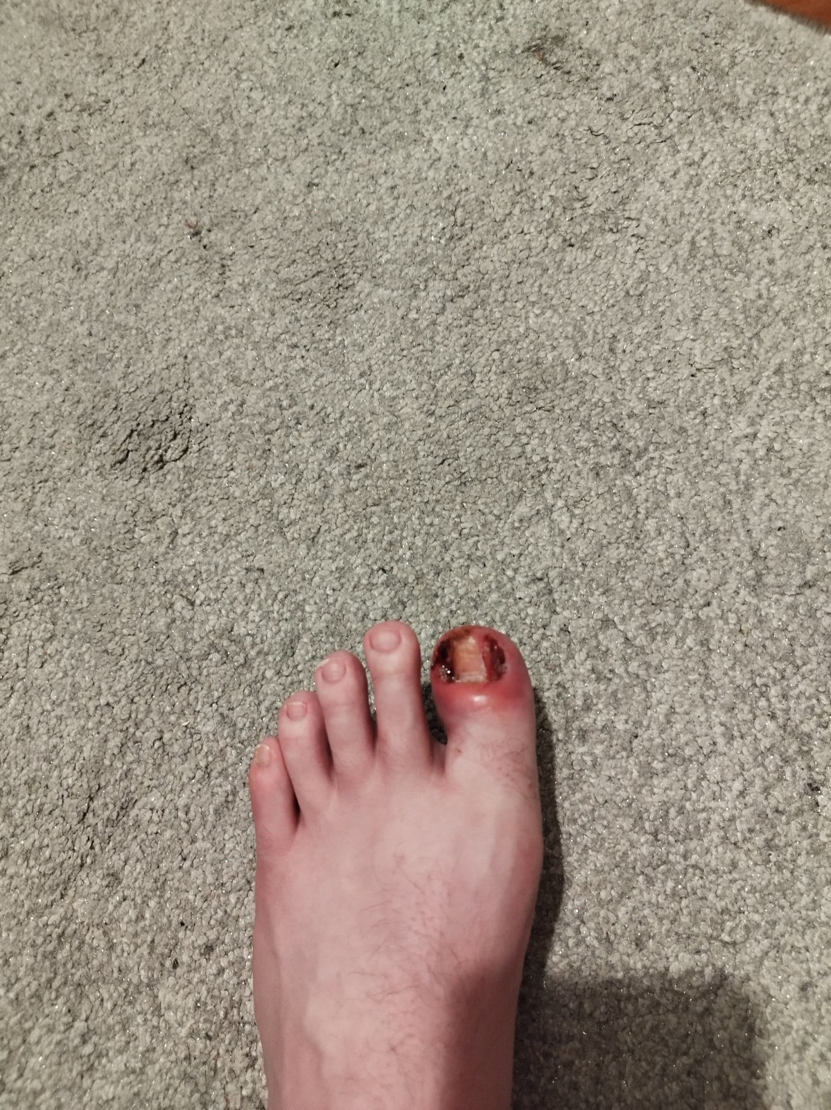 Muzovi robil chirurg takuto napravu a odvtedy ma pokoj...vela vetraj nenos uz viac tesne topanky.radsej o cislo.vacsie a.poriadne doviazat.uvarit repik do lavora a macat viackrat za den.priamo do rezu davaj betadyne.stale kontrolovat ak budes citit tlak opuch pulzovanie tak utekaj za chirurgom.teraz je to.skarede ale prejdu dva tri dnu a bude to.lepsie