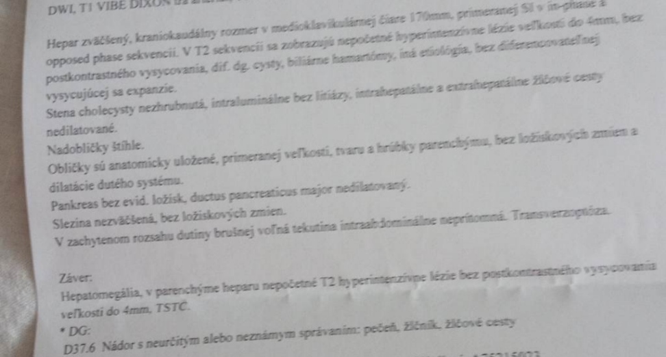 však pozri záver, zväčšená pečeň s nejakým nádorom zatiaľ bližšie neurčeným v pečeni, žlčníku alebo žlčových cestách