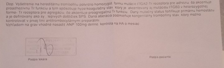 Má niekto skúsenosť s výsledkami trombofílie?