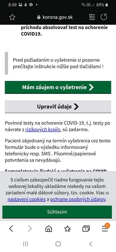 Skus sa prihlásiť sama... Korona.gov.sk