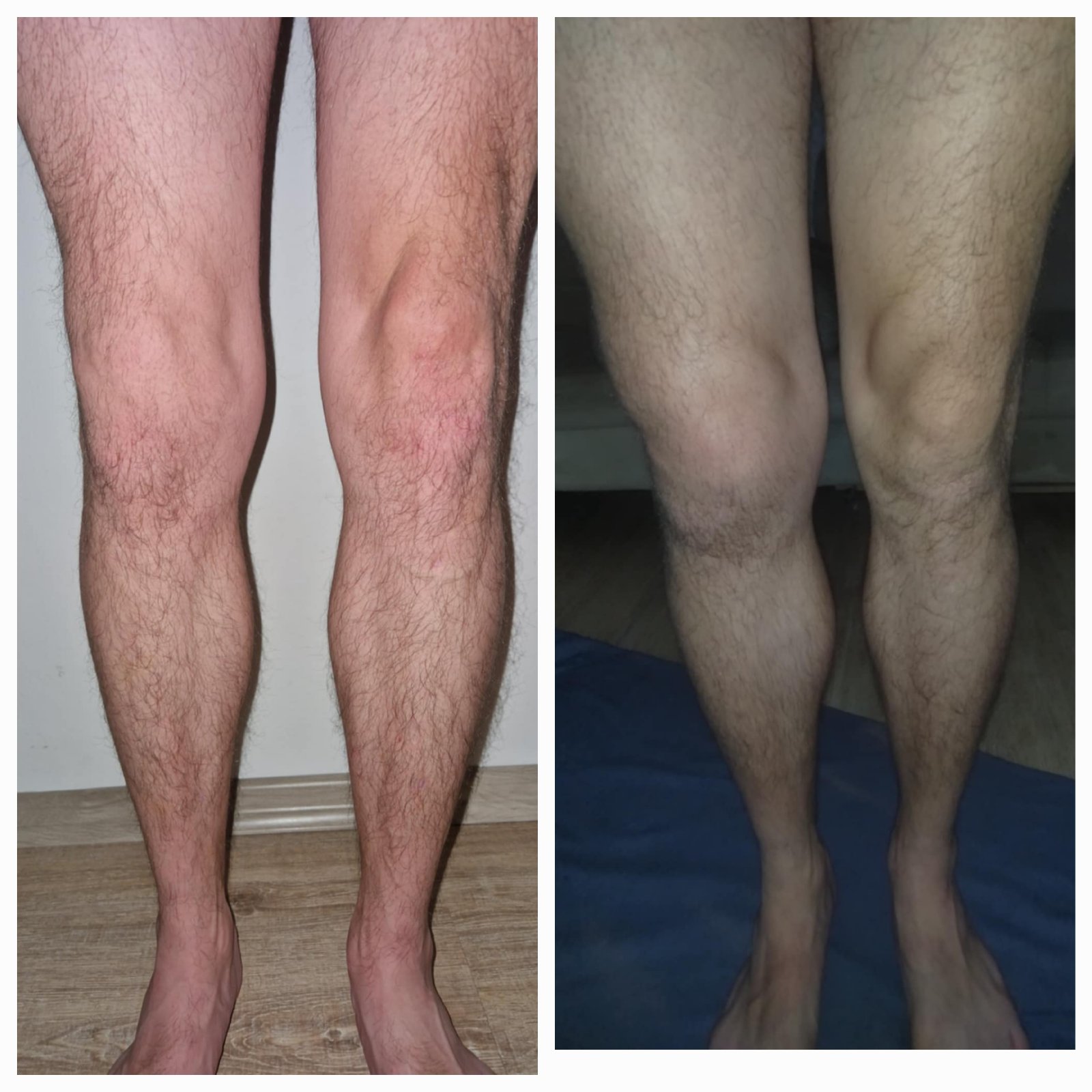 Na fotke je mužovo koleno spred dvoch týždňov, kedy mu to začalo opuchat a druha foto je z dneska.