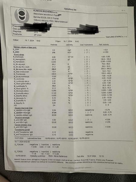 @36kika36 ja som mal len vyššie aslo a že som prekonal mononukleózu crp som mal v norme a b lymfocyty