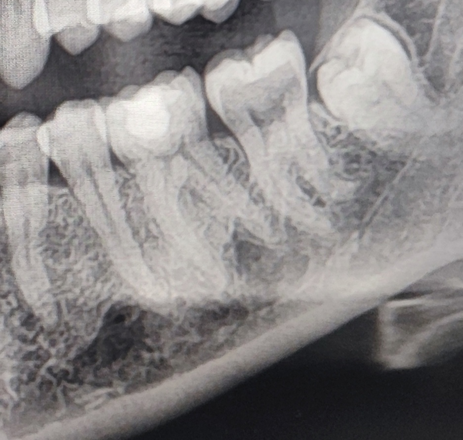 takto mi rastie dolna 8, dva mesiace trpim tlakom a bolestami zubov, cize styri zuby rozvrtane, posledne dni citim, ze sa pohla 8, citim, ze sa tlaci cez dasno, je tesne pod nim, vkuse mi tam zavadzia lice a kusem si do nho, muz ma ukludnuje, ze to prejde, ale nema ako, ked je uz skoro von, nemam miesto na nu, uz dost, ze mam spodne zuby krive, mam sa objednat na vytrhnutie? Liecia mi hornu 7 zapal korenov a este toto mam teraz ako bonus 😥