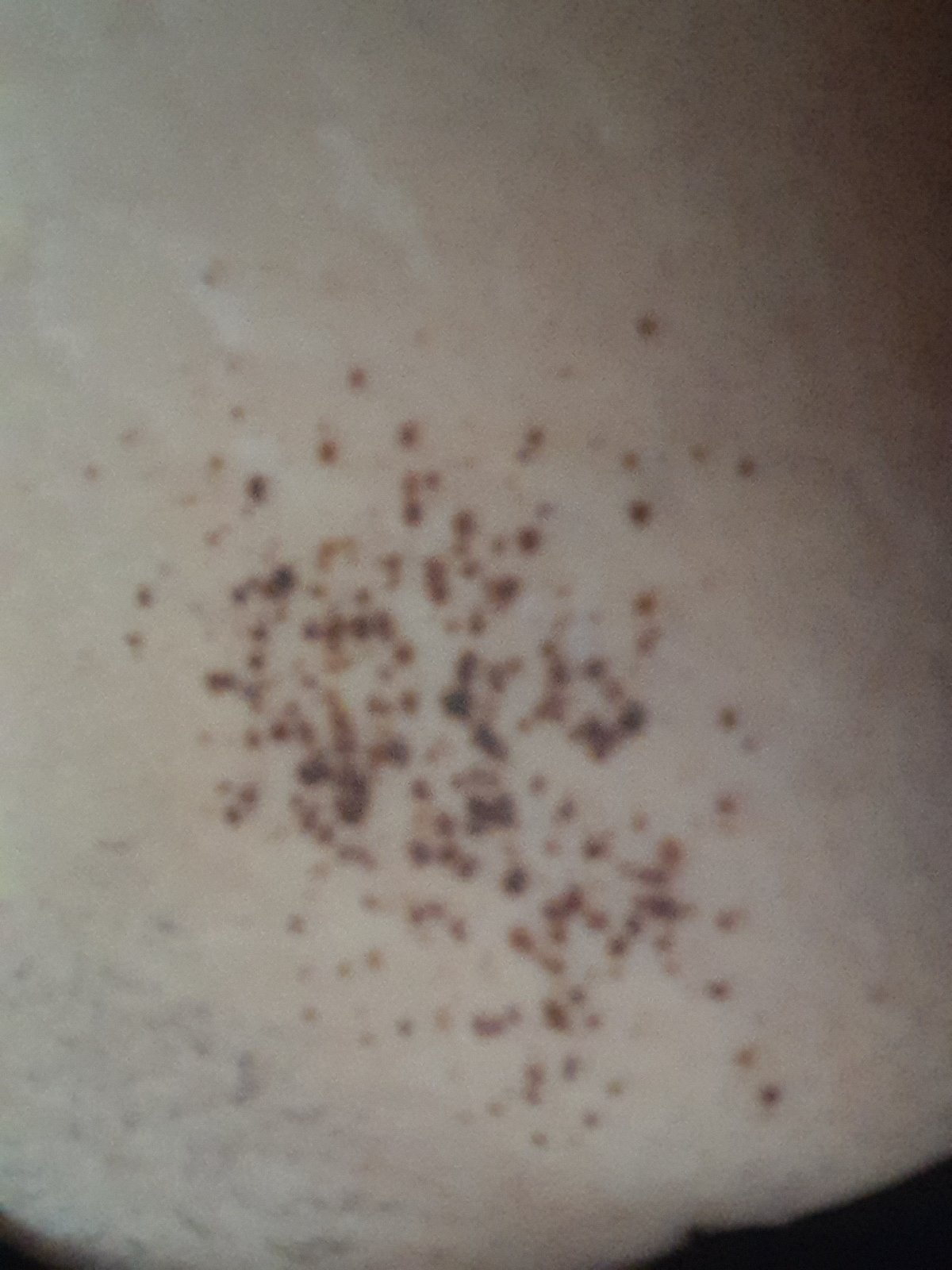 To vyzera na petéchie, to nie su znamienka ale je to hemoragia, su to krvne vyrony velkosti špendlikovej hlavicky, ktore môze byt hnede ,fialove alebo cervene..