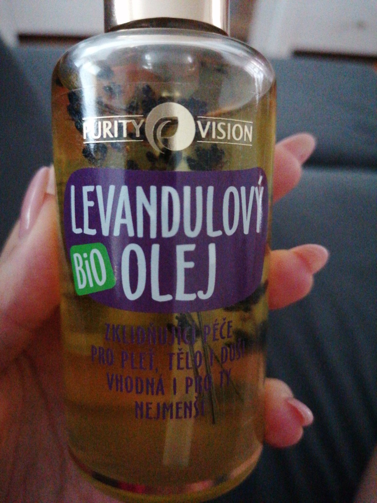 @mattuliatko30 v DMke.. Mala sklenená fľaštička s pumpickou. V oleji je sušená levanduľa