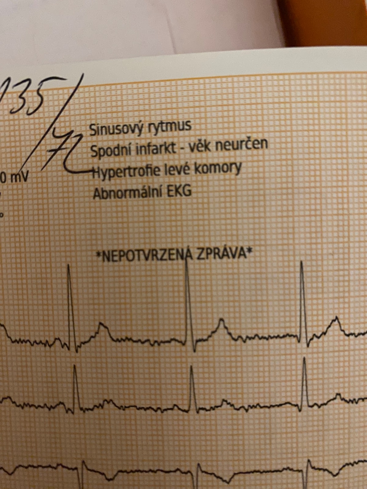 Ahojte, v piatok min. tyždeň som bola u internistu v rámci preventívnej prehliadky. Sestrička mi urobila ekg, doktor sa tváril, že je všetko Ok. No ale teraz som si upratovala papiere v karte a na tom ekg zázname vpravo hore sa píše - viď foto. Veľmi som sa vystrašila..