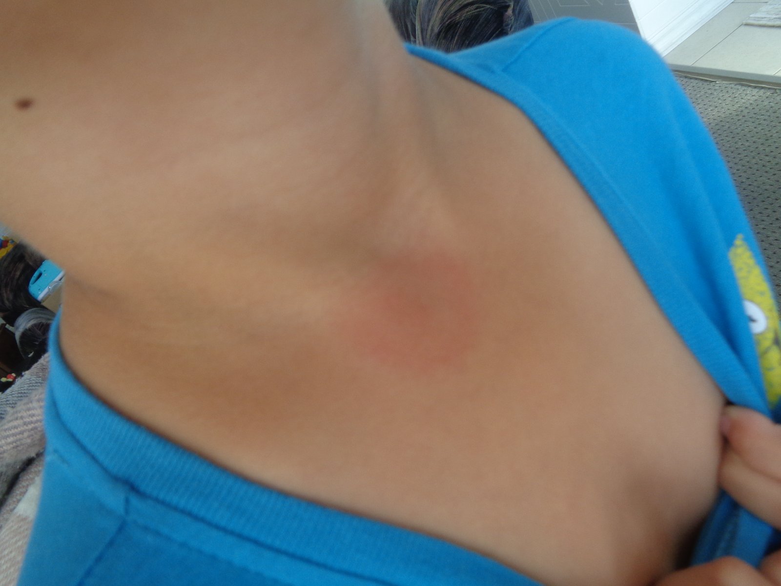 Vcera som mu nasla cervenu vyrazku na klucnej kosti.