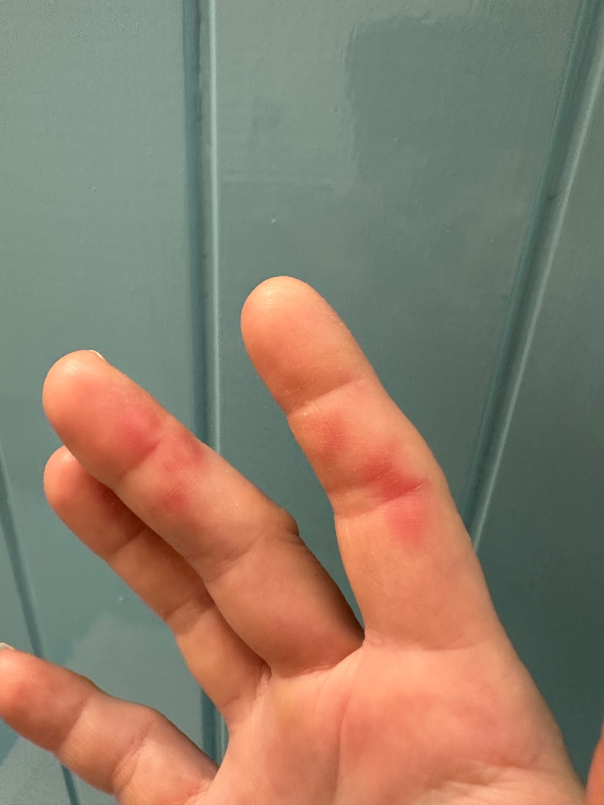 Moze ist o 7chorobu?Som dospelak.Nie dieta.Su to take bolestive akoby vznutra naliate cervene pluzgiere.Momentalne v krajine kde je kazdy den 33-35st.Slnecno.Vsimol som si,ze aj cez minule leto sa mi to spravilo na Cypre na dlaniach ale mensie a menej ako teraz.Nejake tie bodky aj na nohach.Moze to byt nieco ine?Moze sa to opakovat takto viackrat?Preco sa to takto vytvara?Co je spustacom?V lietadle bolo dost vela kaslajucich ludi…