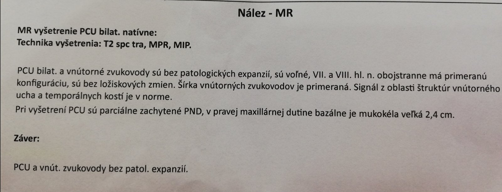 @daneso no to je pekne ale mne robili MR sluchovodov. Síce PND sú asi prínosné dutiny. Môže to mať nejaky súvis? Alebo vplývať na sluch? Nikto mi nevie zistit prečo som nedoslychava 🤷♀️