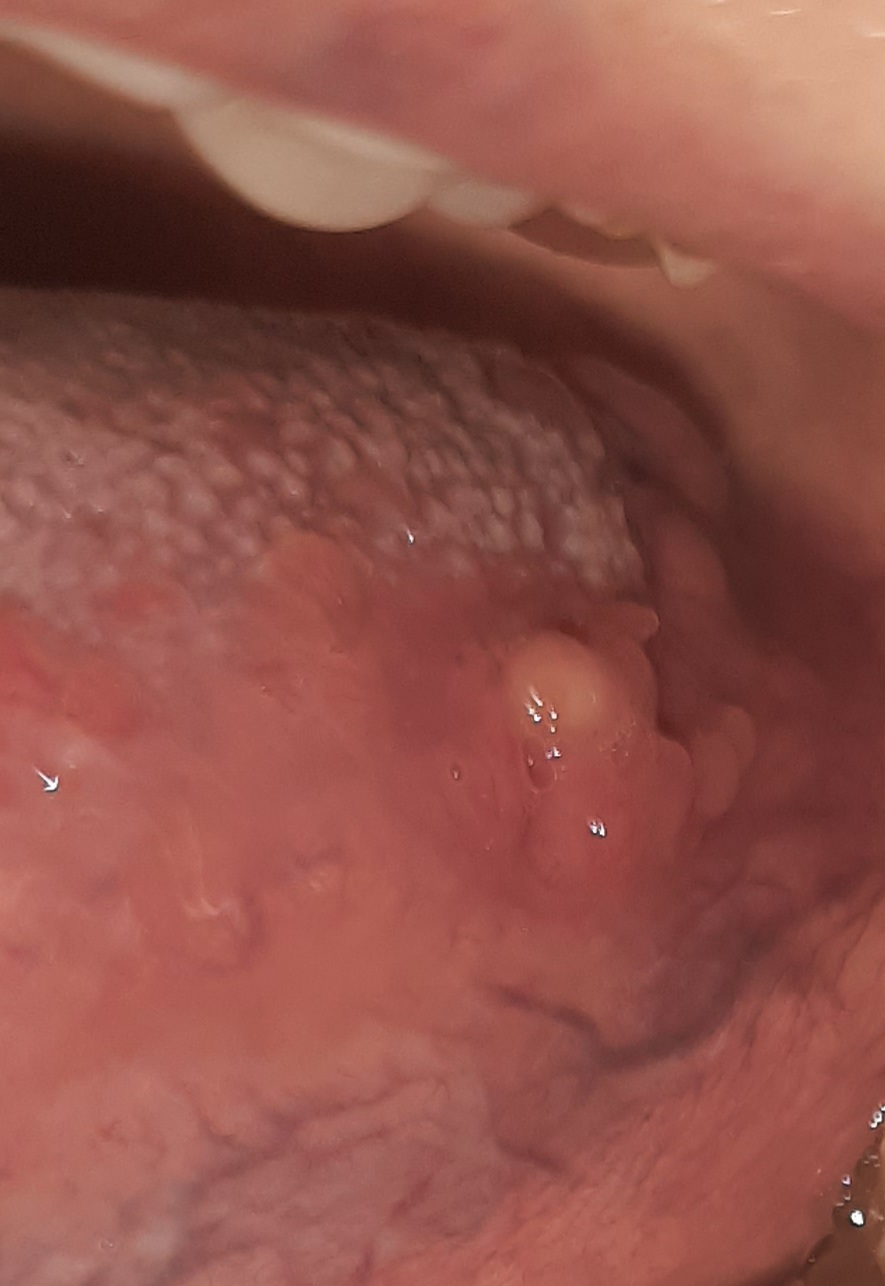 Ospravedlňujem sa za nechutne foto ale čo toto môže byť? Afta to nieje tie mávam často a bolia ako poraza. Toto vyzerá ako niečím naplnený vriedok okolie je zdurene ale neboli to . Zubar povedal ze najskôr infekcia používam corsodyl zatiaľ bez zmeny. Sú obavy na mieste ? Ešte som také niečo nemala. Je to vzadu na boku jazyka.
