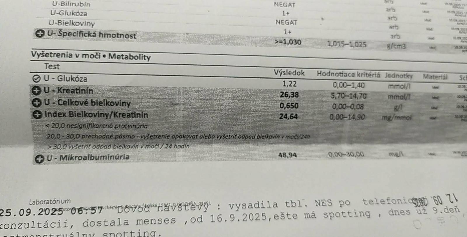 Nezistili mi kreatinín ani bielkoviny z moču