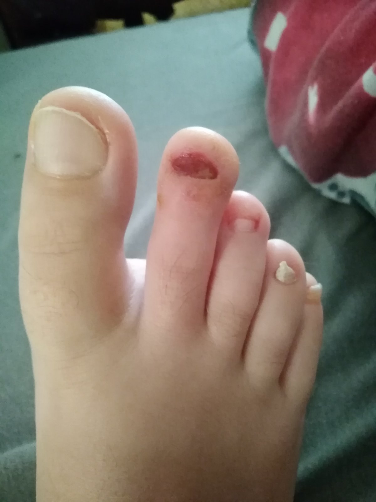 Ahojte v spánku som si odtrhla necht. Mám občasné sebapoškodzovacie sklony ktoré mám z detskej mozgovej obrny. Od malička som si trhala nechty hlavne v spanku. Hlavne na nohach mam niektore nechty zdeformovane. Teraz asi po treti krat som si na tom prste odthla celý necht. Zobudila som sa na to že ma boli prst. Pozriem a nechtove lôžko odtrhnute. Ostal mi tam kusok lôžka a mám tam mäso. Čím sa to dá ošetrovať? Dezinfikujem betadinom obväzujem.