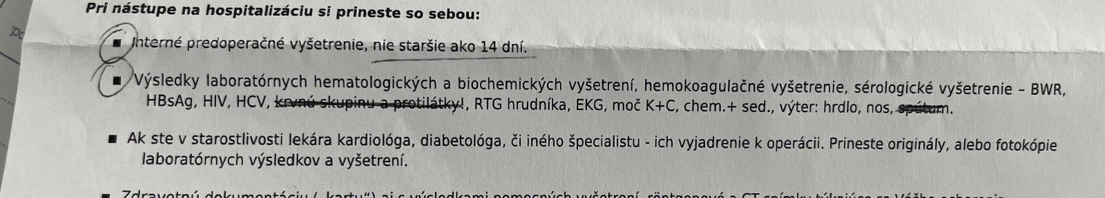 Ahoj, robi tvoja obvodna interne predoperacne? Kedy si bola na tom vysetreni u obvodnej a povedala si jej, ze potrebujes interne predoperacne vysetrenie?
