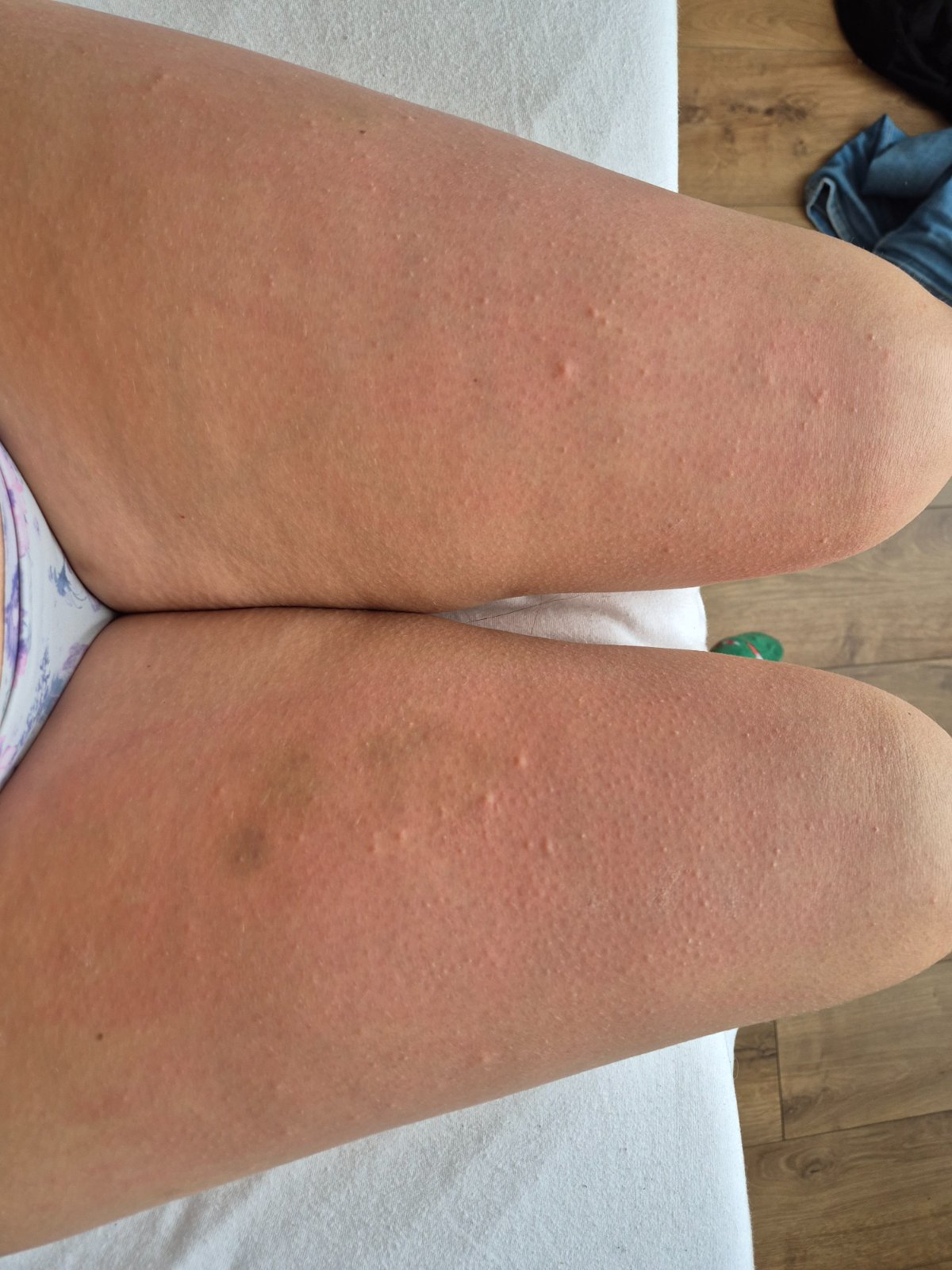 Asi by som išla cestou všeobecného lekára, on by mal spraviť základné vyšetrenia a nasmerovať ťa ďalej. A zatiaľ pokožku premasťovať . Tie modriny na stehnách, máš z úderu? Nerobia sa ti samovoľne?