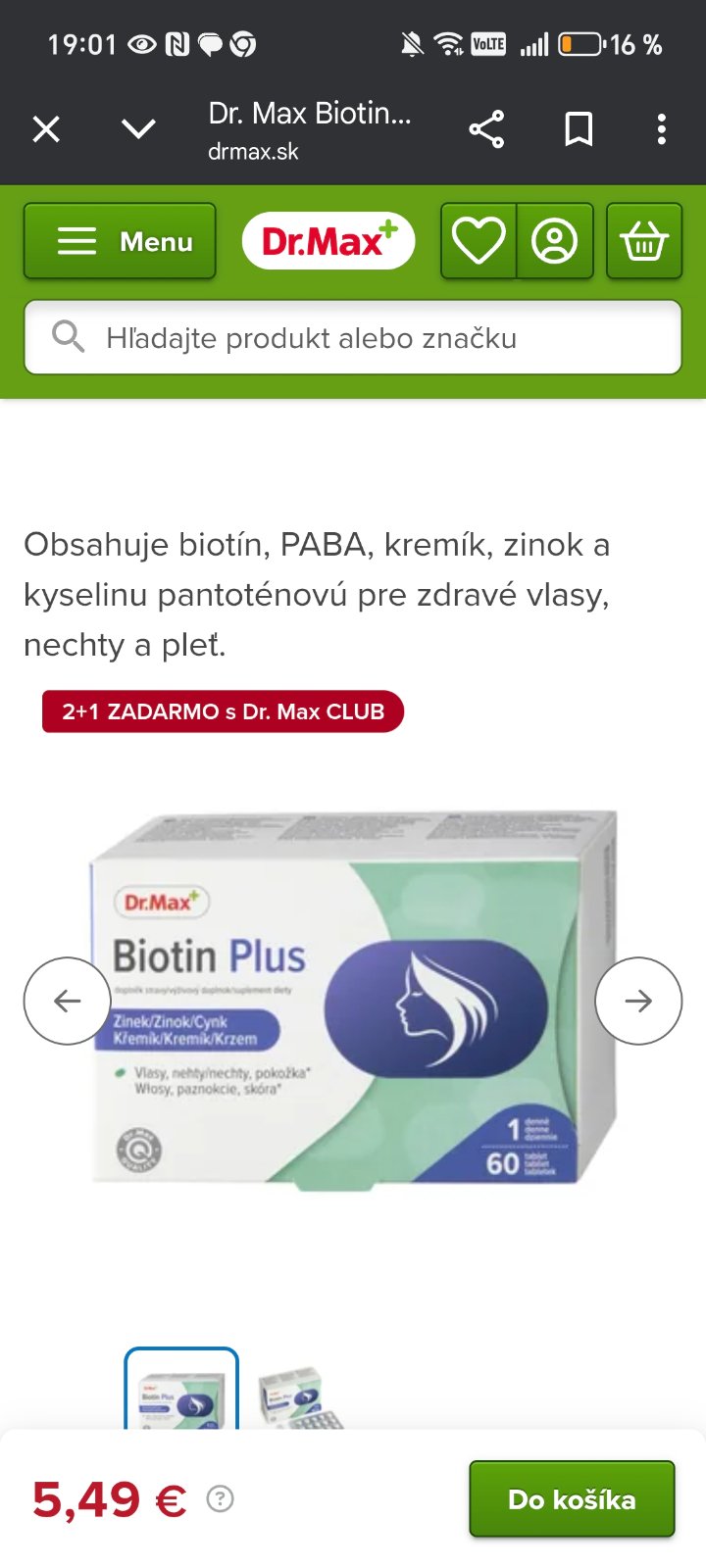 Povedali mi v lekarni, ze tento biotin je slaby,biotin od walmarku ma 2x viac biotinu,a ten vyborne zabera.Zinok si kup samostatne,a tiez vyssiu koncentraciu ako je tu.