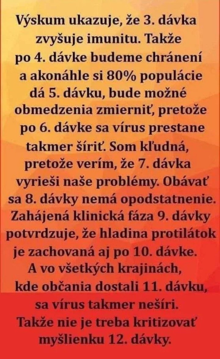 Btw. Ak tu niekto ešte raz napíše, že však ako deti sme boli očkované, tak čo chcem teraz ... žijeme v dobe kapitalizmu, kedy vakcíny NIE SÚ vyrábané pre ľudí ALE pre ZISKY farmaceutických spočností a tu odjakživa platilo VYLIEČENÝ PACIENT = STRATENÝ ZÁKAZNÍK