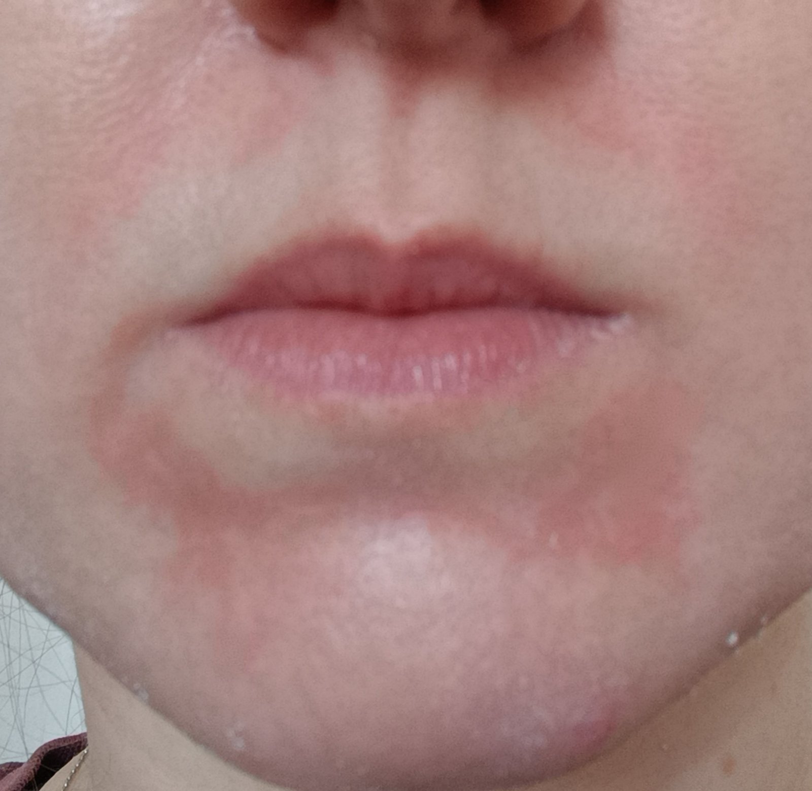 Ahojte .spravili sa mi takéto červené fľaky v oblasti úst a na jednom mieste je to veľmi vysušené aj so šupinkami (len na foto je to zrovna natreté tak nevidno) .ked to natriem pri niektorých produktoch to aj dosť štipe a koža má ťahá.