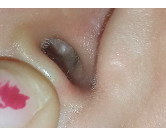To mi pripadá skôr ako vyrážka, až absces v uchu. Neboli ta to? Nie je to citlivé na dotyk?