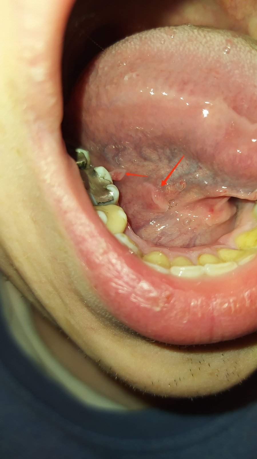 @oli18 vraví že pred 2 mesiacmi tam neboli, až keď cítil taký divný pocit pod jazykom tak ich zbadal. Vyzerá to ale neprirodzene.