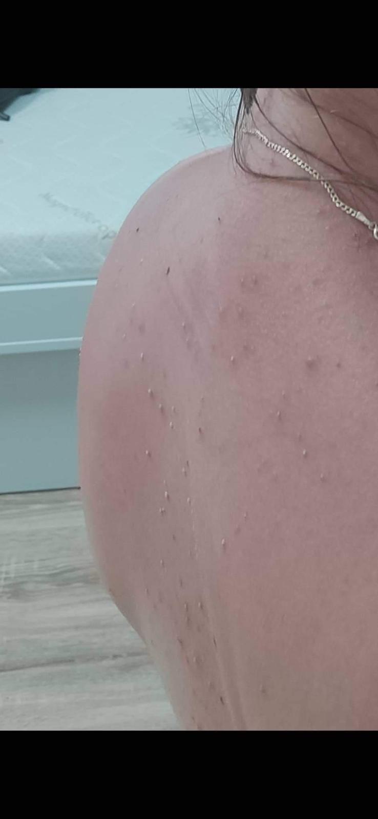 Ahojte, vcera som sa pri praci spalila, pretoze som bola cely den na slnku aj napriek tomu, ze som bola natreta, ale asi bola chyba, ze som sa okolo obedu nenatrela znova, to uz neviem. Idem si k vam po radu. Vcera vecer a aj dnes po sprchovani sa mi vyhodili taketo vyrazky ci na dekolte alebo na chrbte. Chcela by som vediet kedy to zmizne. Natieram si to micelarkou aj kremom. Neviem ci man vytlacat alebo nie, zatial to vytlacam ale neviem ci je to spravne. Este mi napadlo, ze neviem ci je to vlastne z potu alebo z toho spalenia.