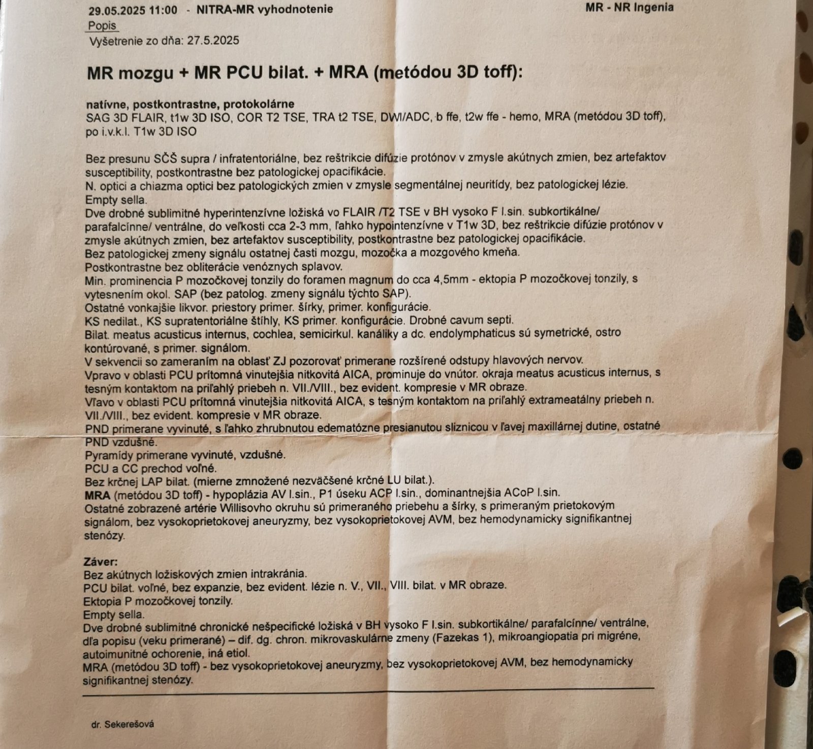 Vyzerá byť všetko v poriadku. Ektopia, znamená, že zmeny sú vrodené, čiže máte ich celý život. Malé lézie sú pravdepodobne spôsobené už vašim vekom (vychádzam zo správy). Za mňa normálny obraz MR staršieho človeka.