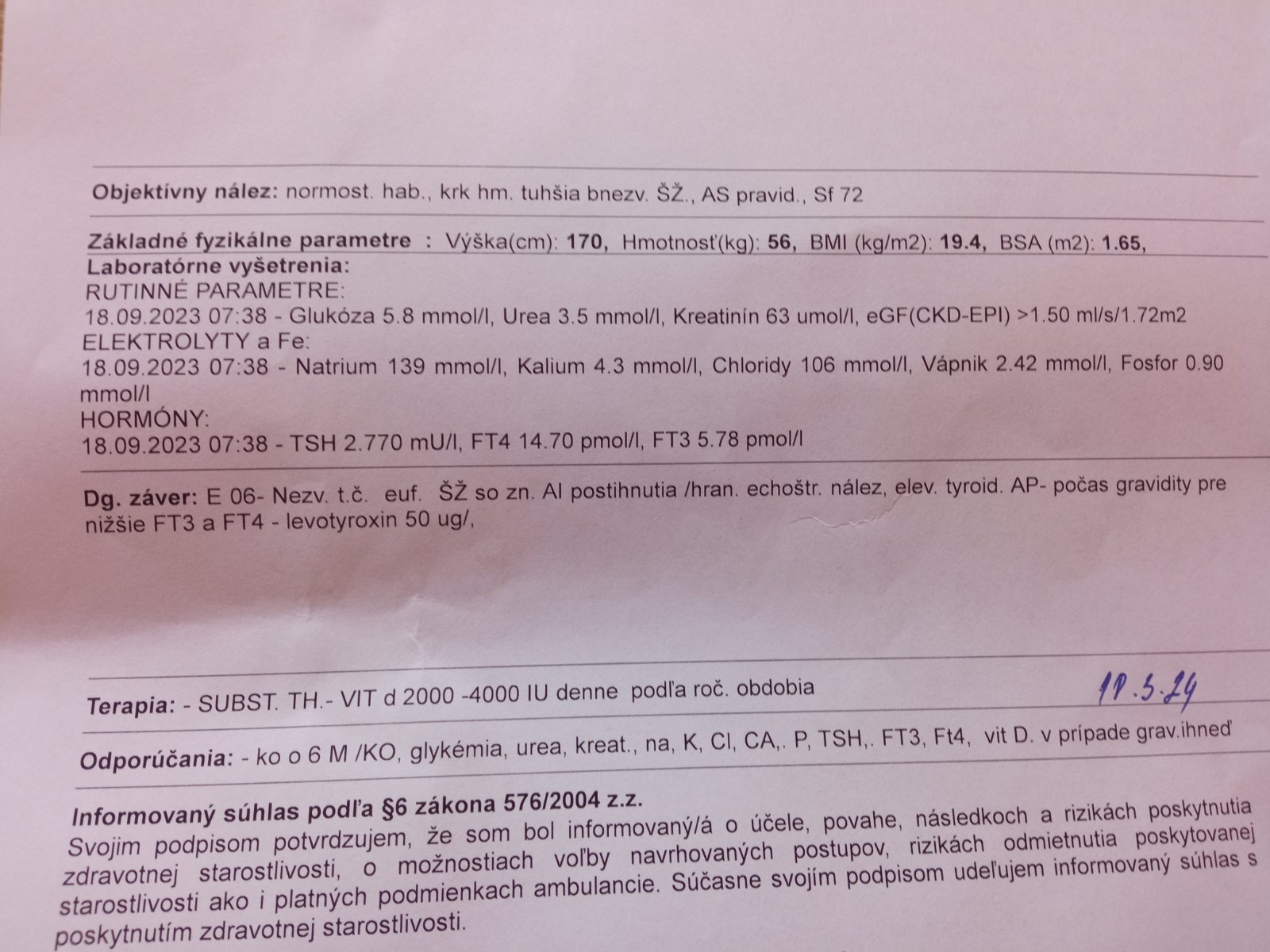 No ale podla vysledkov Ti nemaju preco dat lieky, hormonov mas dost, TSH mas v norme.