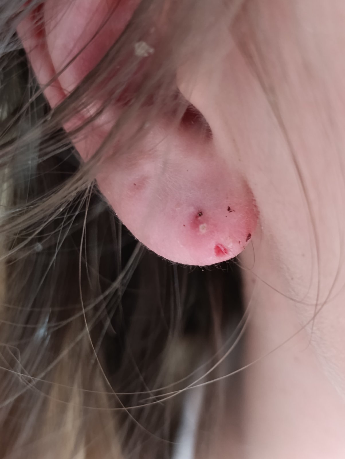 To bude nejaky infekt,aj ja som to mala,ked som nausnice mala nie zlate,ale ako len obycajne, bizuteria..Prestala nosit, infekt zmizol, asi za tyzden