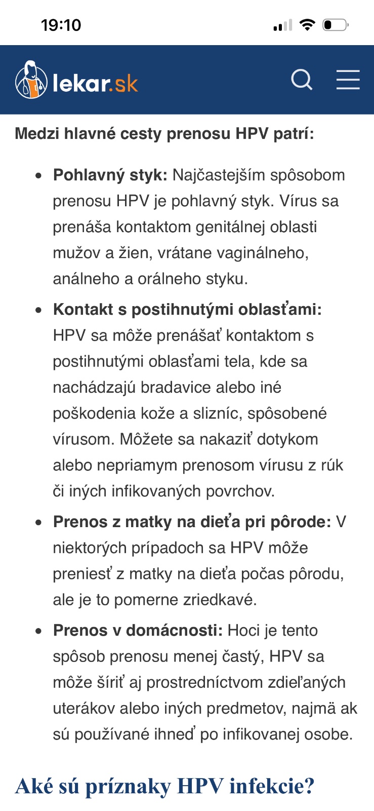 @zuzana76 Tak toto je pre mna nova informacia s tymi 3%. Ja som ockovana a mam pred hpv velky respekt. Kazdorocne som na prevencii. Ale neviem ako by som nalozila s informaciou, ze priatelova ex ma hpv. Asi nijak. Lebo liecit sa to neda, kondom tomu nie celkom vie zabranit..