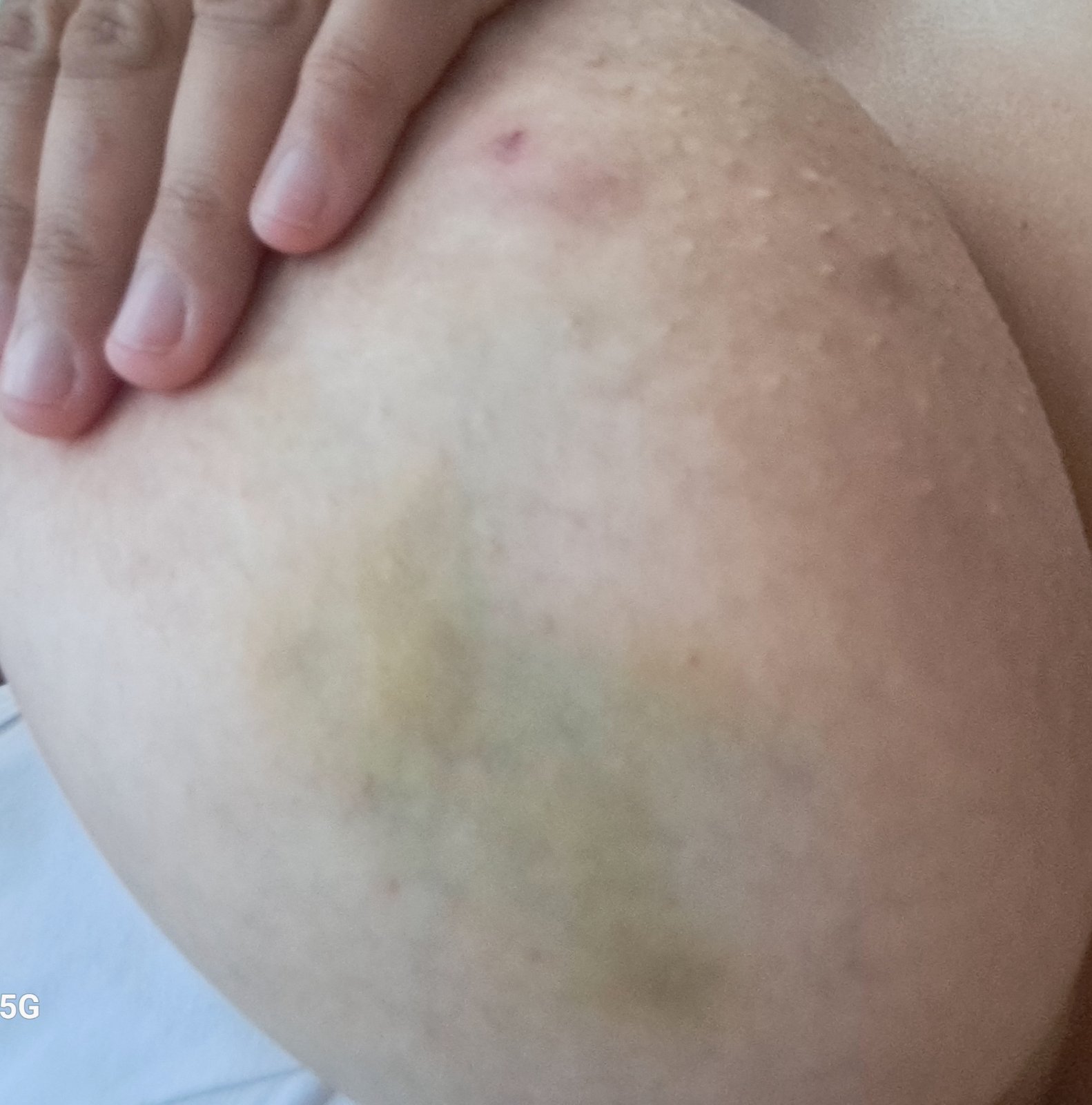 Pekný večer, chcem sa spýtať. Včera večer som mala na prsníku takú akokeby vyrážku,v ktorej bol hnis. Ten hnis mi vyšiel (nebolo ho veľa) potom aj troška krvi. Zaspala som a ráno som stála s veľkou cm žlto zelenou modrinou.