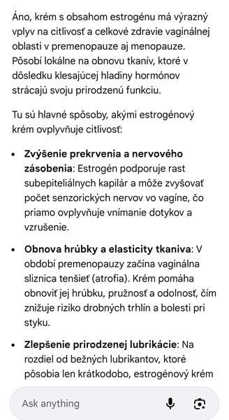@anonym_autor no ja mam vyssi vek ako pises, ze mas ty a tiez pouzivam hormonalny krem. Vlhka som bola tiez az az a napriek tomu to oznacili ako atrofiu posvy a vaginalnu suchost. Cyklus stale pravidelny, mojim problemom zacali byt opakujuce sa infekcie. Podla toho, co som citala, hladina hormonov uz nebyva tak vysoka ako kedysi a zaroven su vykyvy velmi prudke a telo na to reaguje. No a potvrdzujem, ze vplyv na citlivost ten estrogen v kreme ma, zvysila sa. Sliznica je pruznejsia a prekrvenejsia, tak zrejme preto.