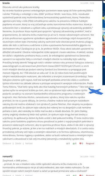@anonym_0e7b99 Trapne antivax. A ako ta uspokoji to, ze vystrasis mamu nejakej dcery, ktora moze skoncit s rakocinou krcka? Ak nechces, neockuj sa, neockuj svoje deti, je to dobrovolne, ale tieto trapne prispevky pod anonymom si vrchol absurdity.