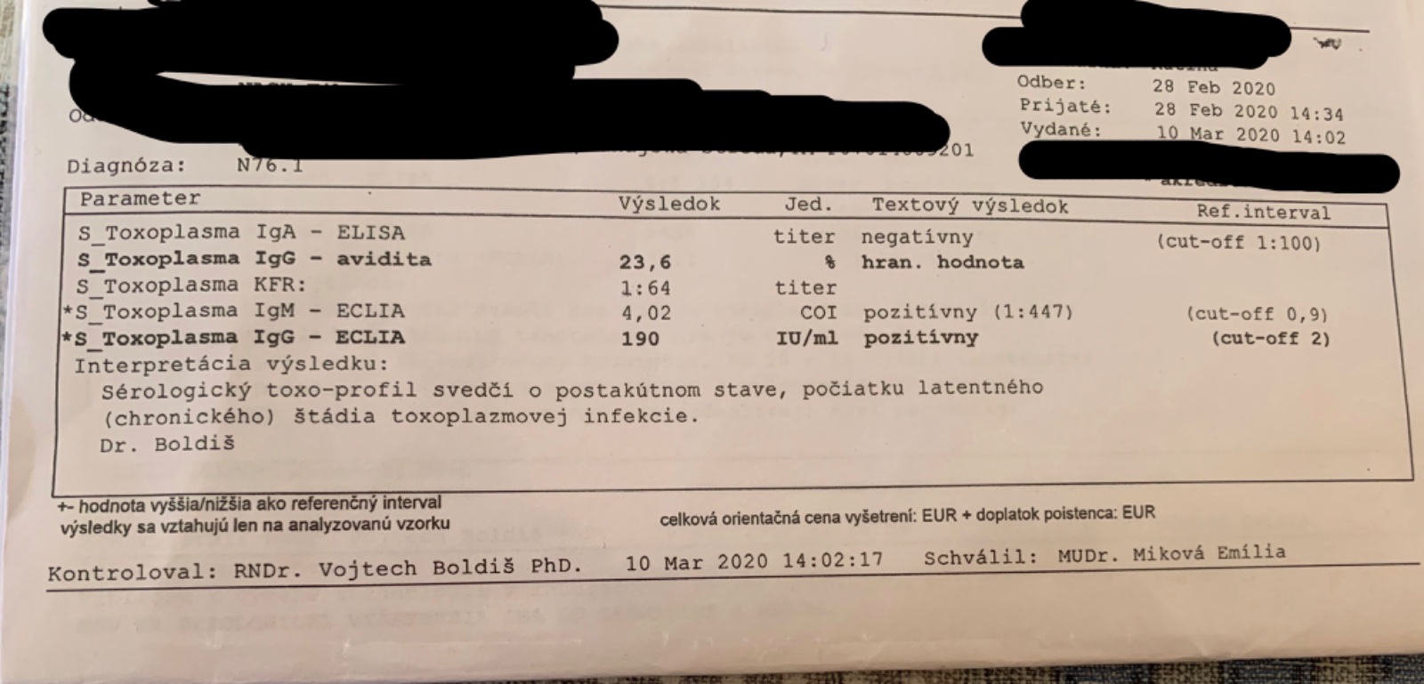 @mariska1989 ano bola som liecen pocas tehu aby nenapadlo plod sme cakali dvojky no prisli sme o ne v 22tt no nie koli toxo ale transfuznemu syndromu dvojiciek 😔toto su blastne vysledky z 28februara tak myslis ze uz by mali byt negativne teda IgA uz je negat ale to IgM este nie :/ a IgG bude este nejaku dobu to viem to je vlastne ta protilatka :/