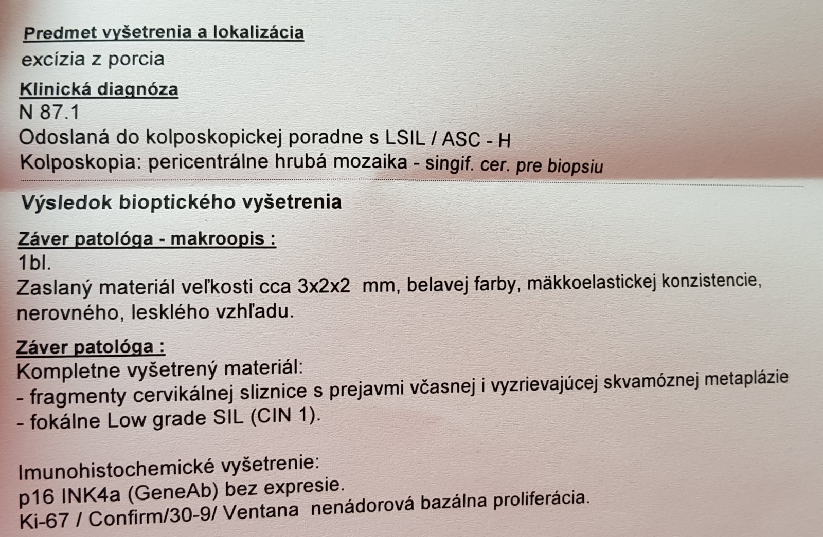 Vysvetlenie výsledkov biopsie.