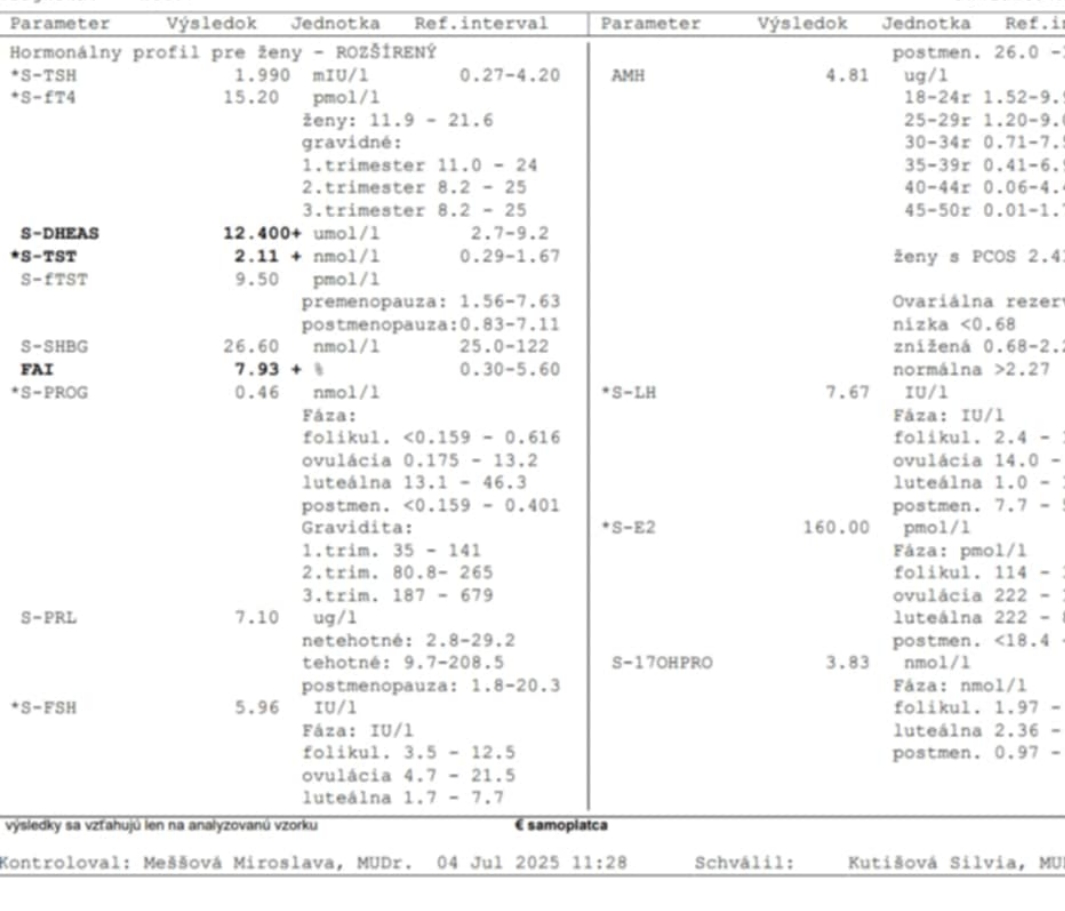Dobry den stretli ste sa niektora s takymito vysledkami? Som po dvoch bezproblemovych tehotenstvach. Momentalne mam problem s tvorbou cist v prsnikoch. Na zaklade toho bol odporuceny hormonalny profil. Vajecniky po vysetreni su ok. Viete mi povedat co to znamena?