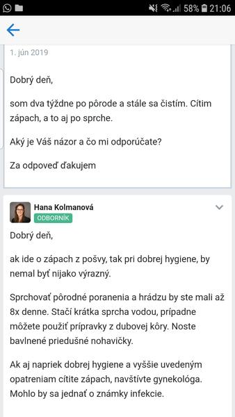 To, čo hovoria maminky vyššie je pravda, ale mne to po dvoch týždňoch prešlo do zápachu, ktorý bol akoby "rybacina". Prepáč, neviem to lepšie popísať 😀 a k tomu ma miestami aj svrbela rana, čo je ale tiež mätúce,lebo ona keď sa hojí, miestami trošku svrbí. Nezdalo sa mi to a šla som ku gynekológovi a ten mi spozoroval infekciu. takže som dostala čipky, ktoré som zavádzala pred spaním. To teda nebolo nič príjemné tak čerstvo po pôrode.
