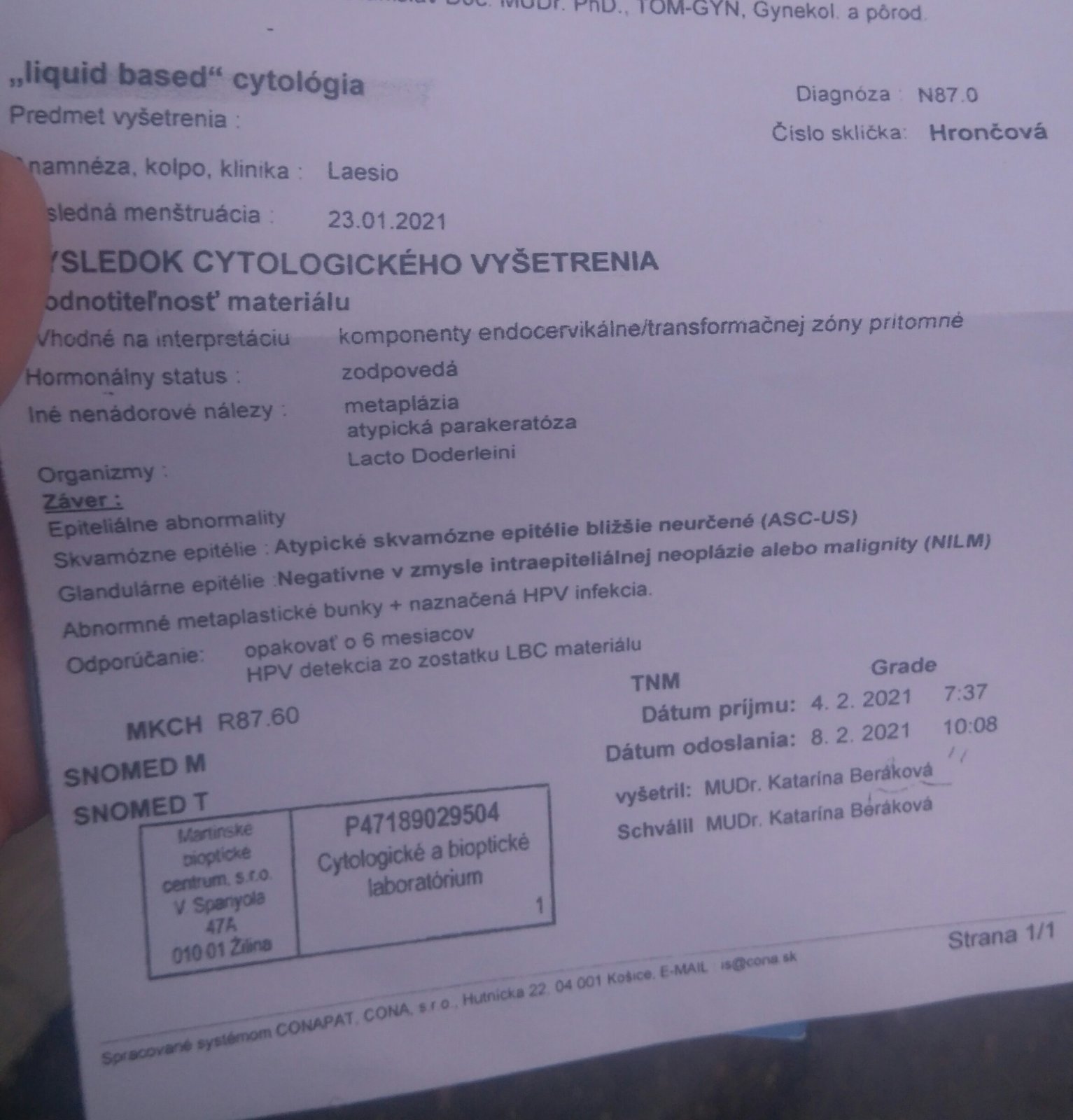 @lienocka2808 tie výsledky sú úplne tie isté ako som mala aj prvé výsledky len tam pribudlo atypicka parakeratoza tak neviem