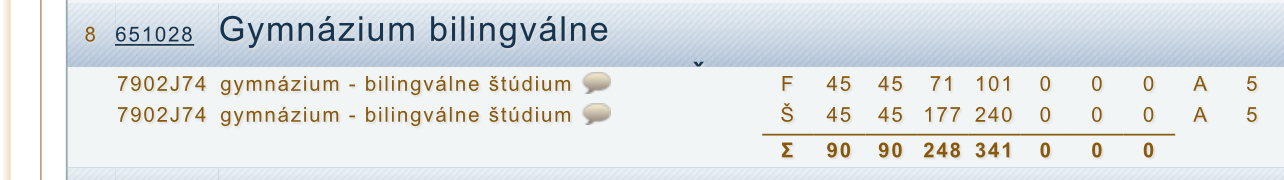 Priemerný počet uchádzačov na sekcie v gymnáziu GBZA